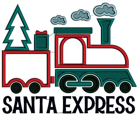 Santa Express Train Carrying Christmas Tree And Gifts Applique Machine Embroidery Design Digitized Pattern