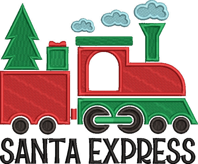 Santa Express Train Carrying Christmas Tree And Gifts Filled Machine Embroidery Design Digitized Pattern