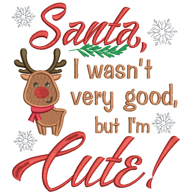 Santa I Wasn't Very Good But I'm Cute Reindeer Christmas Filled Machine Embroidery Digitized Design Pattern