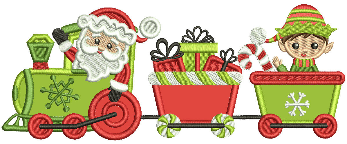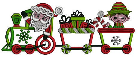 Santa Train With Elf Man And Presents Christmas Applique Machine Embroidery Design Digitized Pattern