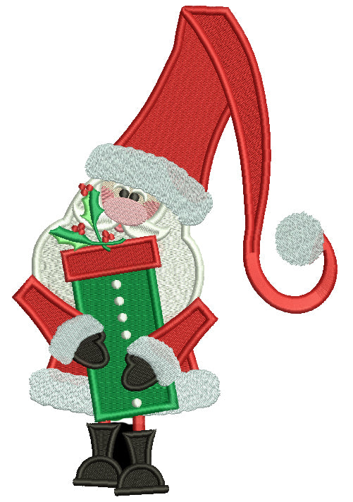 Santa With a Tall Hat Holding Presents Christmas Filled Machine Embroidery Digitized Design Pattern