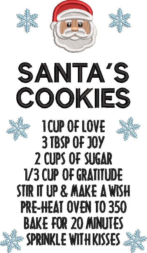 Santa's Cookies Recipe Christmas Filled Machine Embroidery Design Digitized Pattern