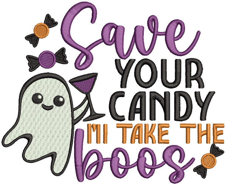 Save Your Candy I'll Take The Boos Ghost Halloween Filled Machine Embroidery Design Digitized Pattern