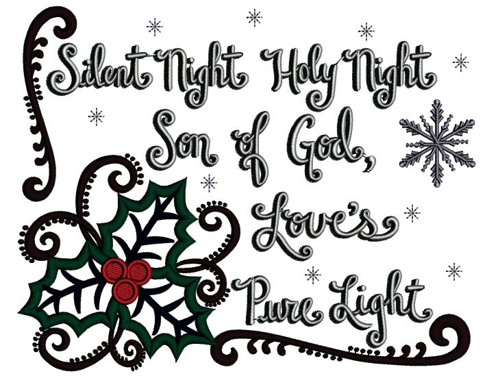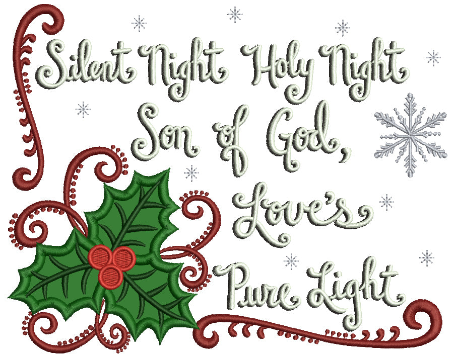 Silent Night Holy Night Son of God Love's Pure Light 3D Text Christmas Applique Machine Embroidery Digitized Design Pattern