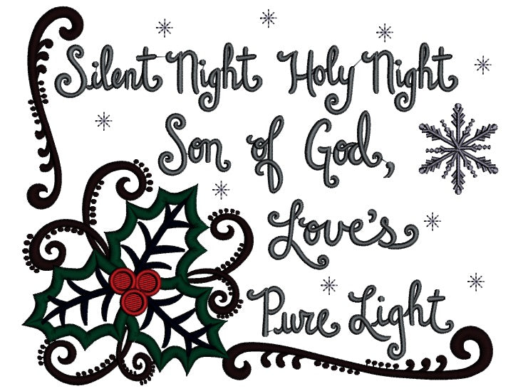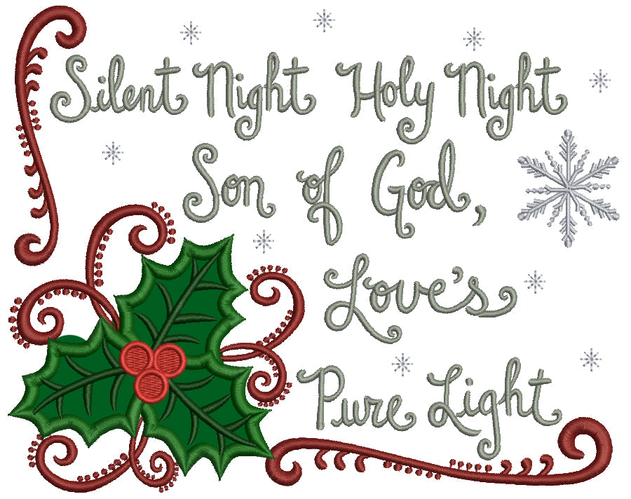 Silent Night Holy Night Son of God Love's Pure Light Christmas Applique Machine Embroidery Digitized Design Pattern