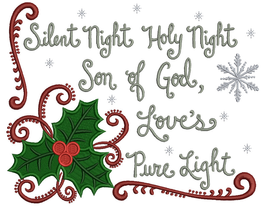 Silent Night Holy Night Son of God Love's Pure Light Christmas Filled Machine Embroidery Digitized Design Pattern