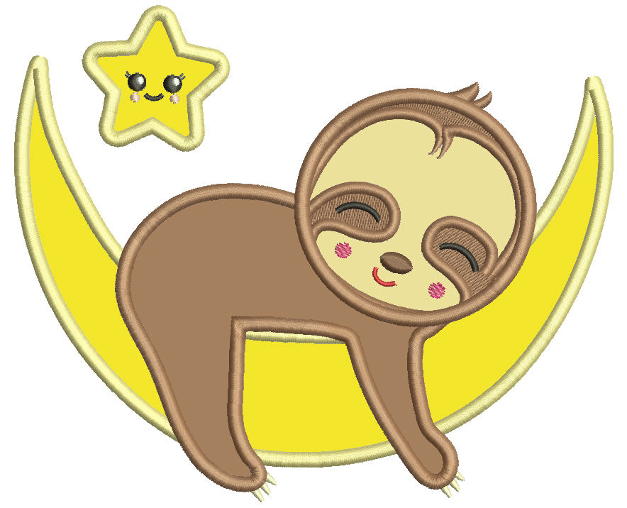 Sloth Sleeping On The Moon And Smiling Star Applique Machine Embroidery Design Digitized Pattern