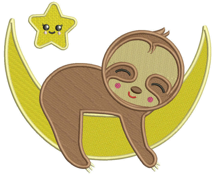 Sloth Sleeping On The Moon And Smiling Star Filled Machine Embroidery Design Digitized Pattern