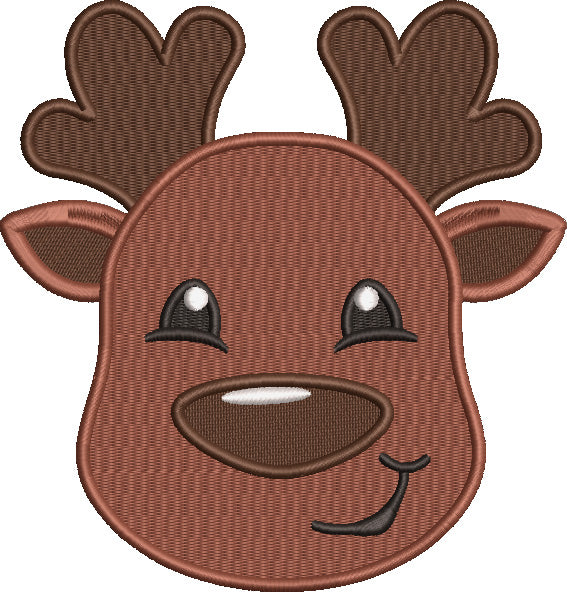 Smiling Reindeer Head Christmas Filled Machine Embroidery Design Digitized Pattern