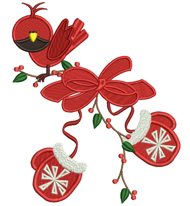 Snow Mittens and a Cute Bird Christmas Filled Machine Embroidery Digitized Design Pattern