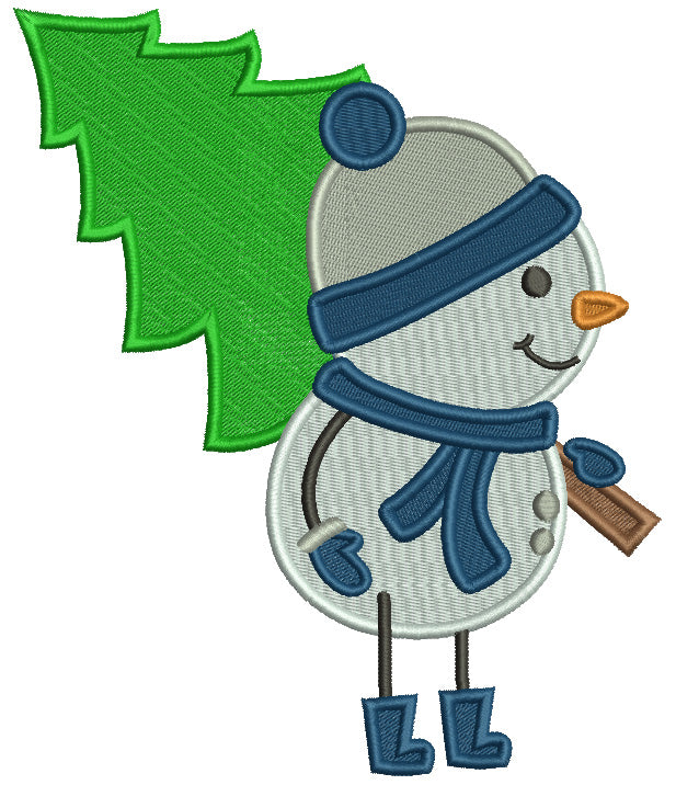 Snowman Carrying Christmas Tree Christmas Filled Machine Embroidery Design Digitized Pattern