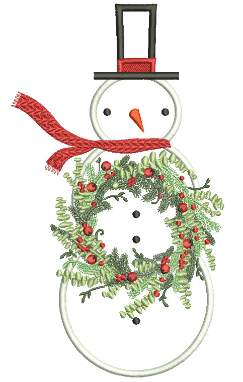 Snowman Holding Christmas Wreath Applique Machine Embroidery Design Digitized Pattern