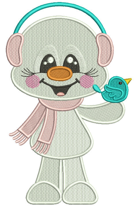 Snowman Holding Little Bird Christmas Filled Machine Embroidery Design Digitized Pattern