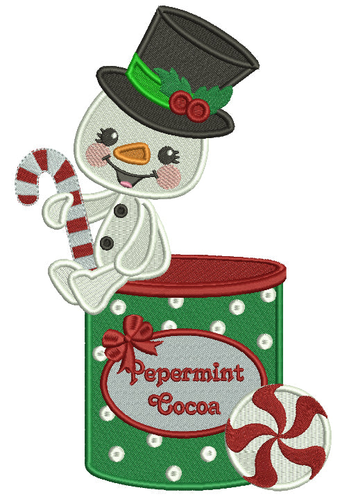 Snowman Sitting of a Can Of Peppermint Cocoa Christmas Filled Machine Embroidery Design Digitized Pattern