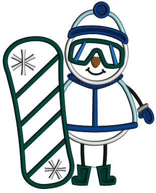 Snowman Snowboarder Christmas Applique Machine Embroidery Design Digitized Pattern