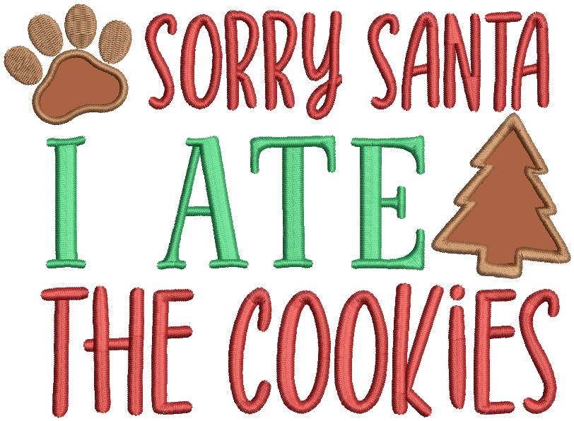 Sorry Santa I Ate The Cookies Christmas Applique Machine Embroidery Design Digitized Pattern
