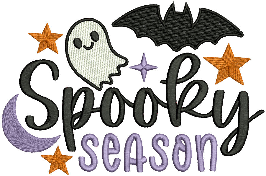 Spooky Season Ghost and Bat Halloween Filled Machine Embroidery Design Digitized Pattern