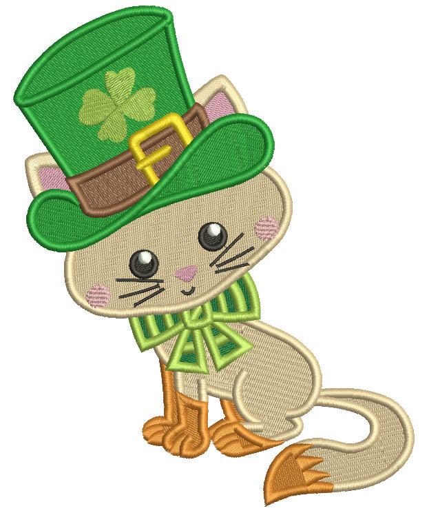 Lucky Cat Wearing Big Hat St. Patricks Day Filled Machine Embroidery Design Digitized Pattern - 13111