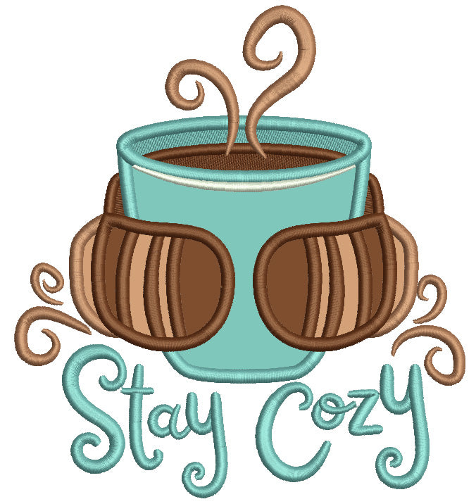 Stay Cozy Hot Cup Of Cocoa Christmas Applique Machine Embroidery Design Digitized Pattern