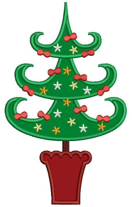 Tall Christmas Tree Applique Machine Embroidery Digitized Design Pattern