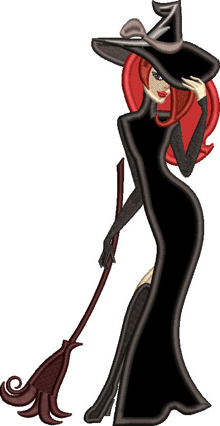 Tall Witch With Red Hair Halloween Applique Machine Embroidery Design Digitized Pattern