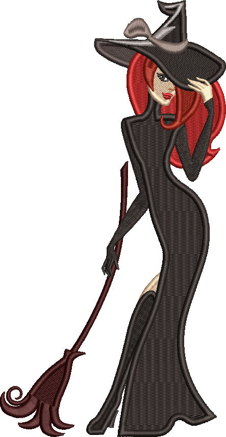 Tall Witch With Red Hair Halloween Filled Machine Embroidery Design Digitized Pattern