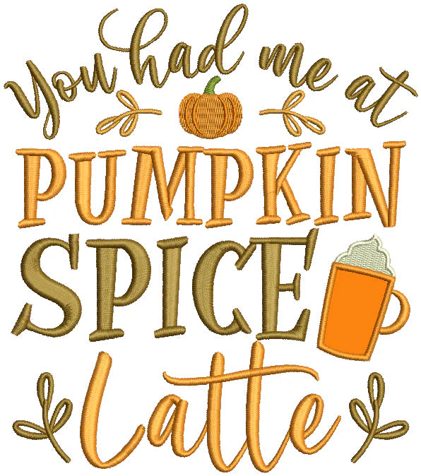 You Had Me At Pumpkin Spice Thanksgiving Applique Machine Embroidery Design Digitized Pattern - 10725