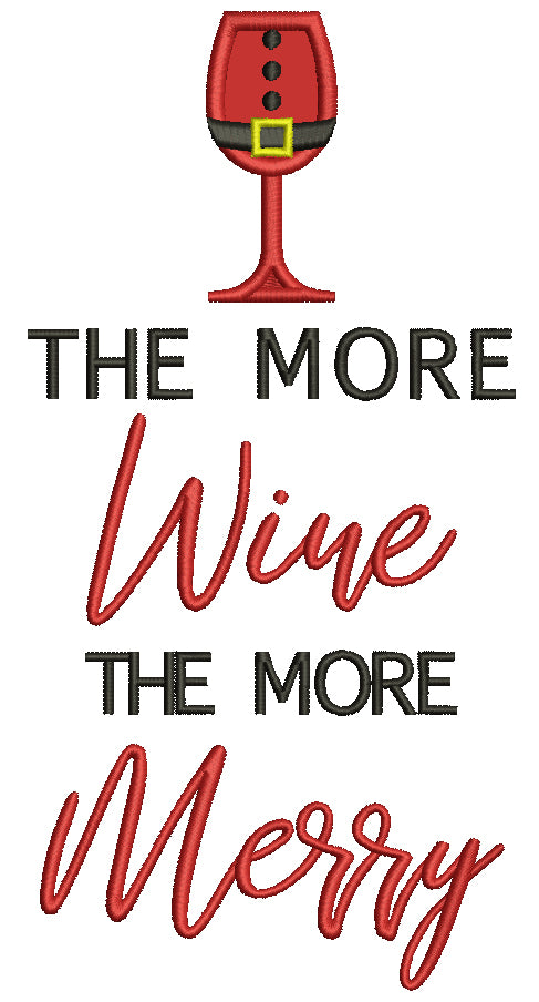 The More Wine The More Merry Christmas Applique Machine Embroidery Design Digitized Pattern
