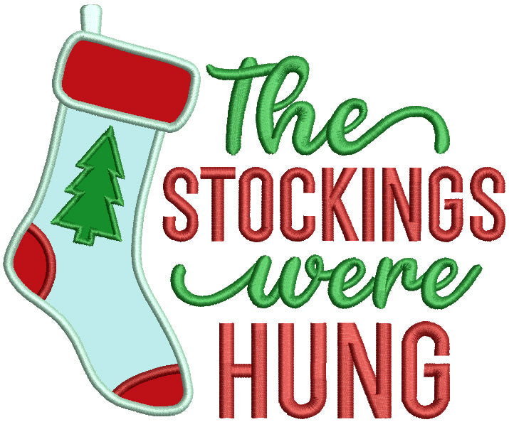 The Stockings Were Hung Christmas Applique Machine Embroidery Design Digitized Pattern