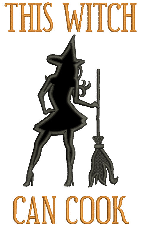 This Witch Can Cook Halloween Applique Machine Embroidery Design Digitized Pattern
