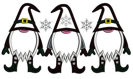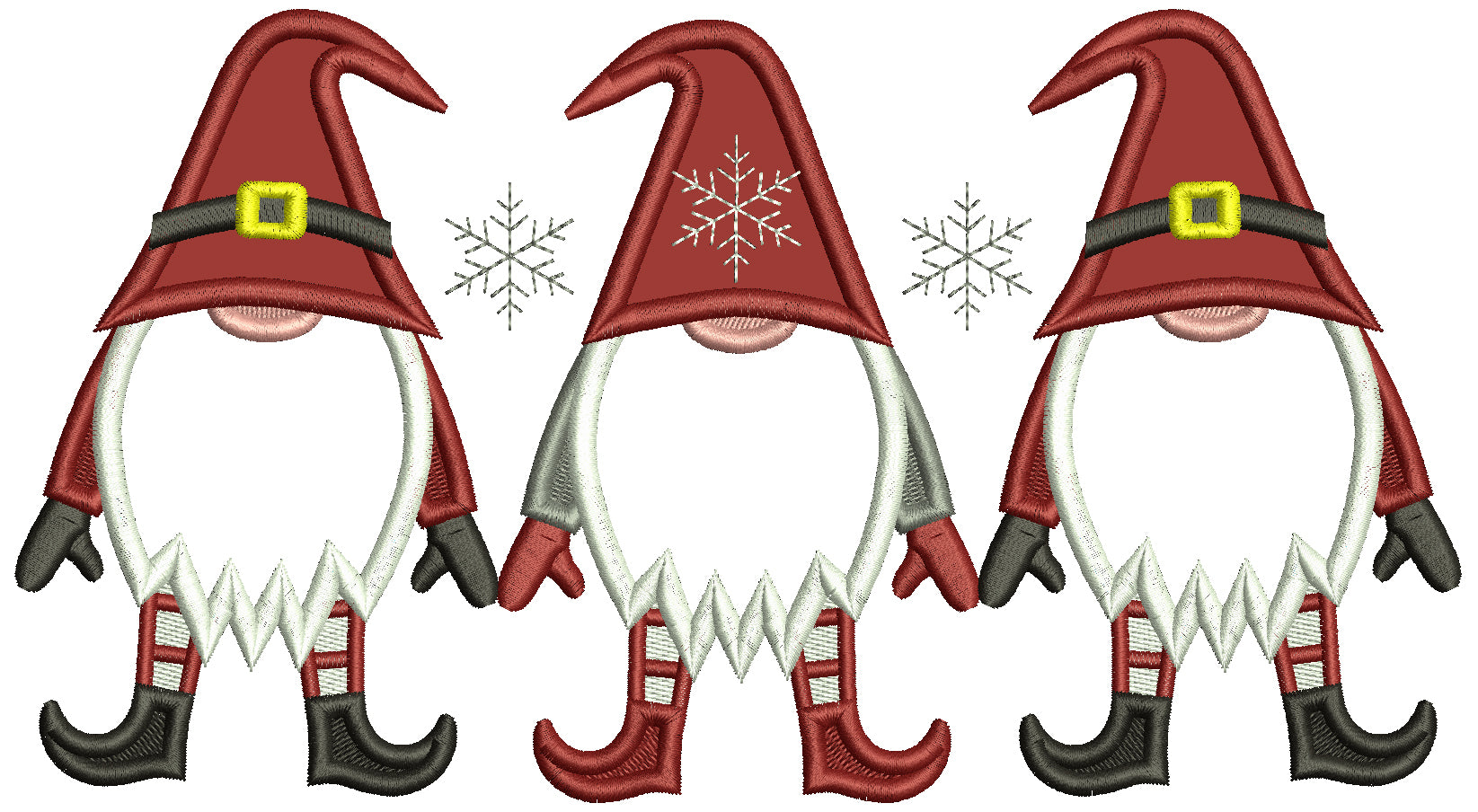Three Christmas Gnomes Applique Machine Embroidery Design Digitized Pattern