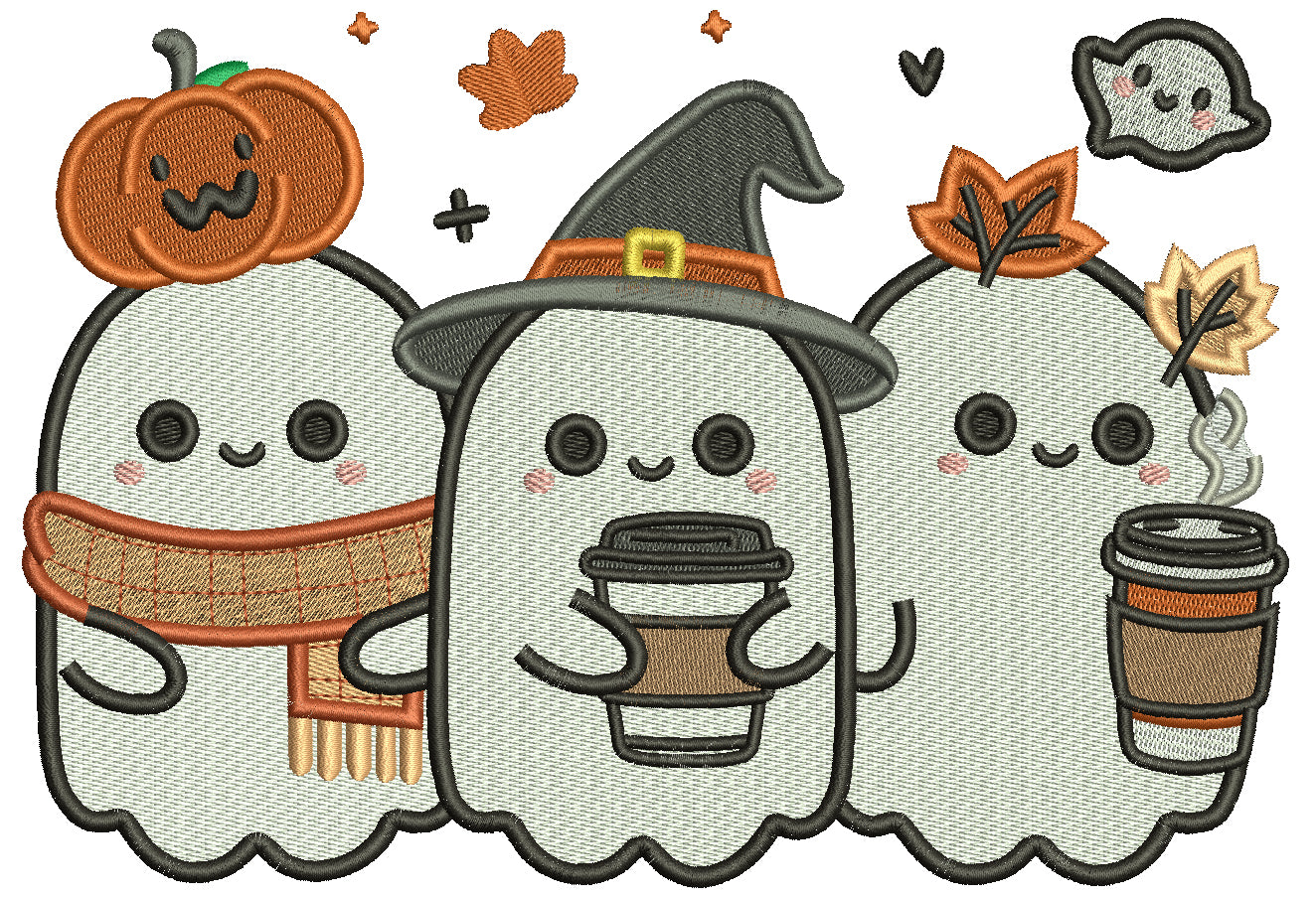 Three Cute Ghosts Halloween Filled Machine Embroidery Design Digitized Pattern