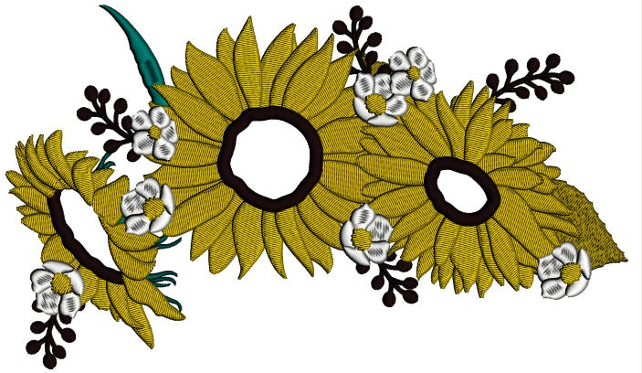 Three Sunflowers Fall Thanksgiving Applique Machine Embroidery Design Digitized Pattern