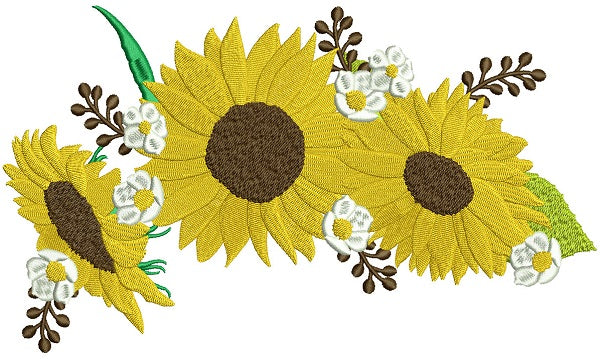 Three Sunflowers Fall Thanksgiving Filled Machine Embroidery Design Digitized Pattern