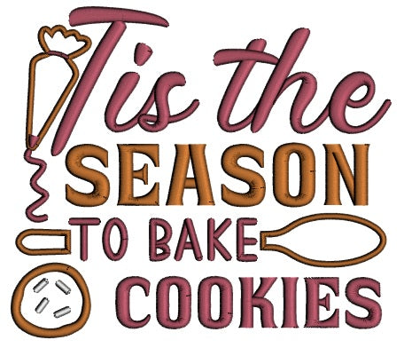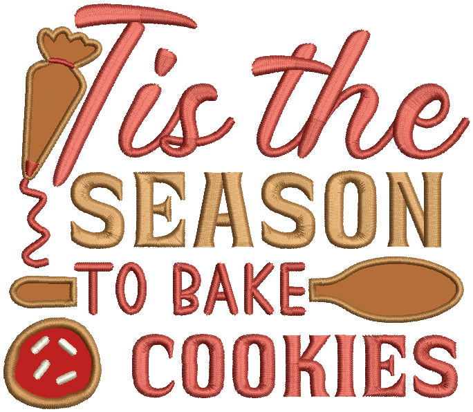Tis The Season To Bake Cookies Christmas Applique Machine Embroidery Design Digitized Pattern