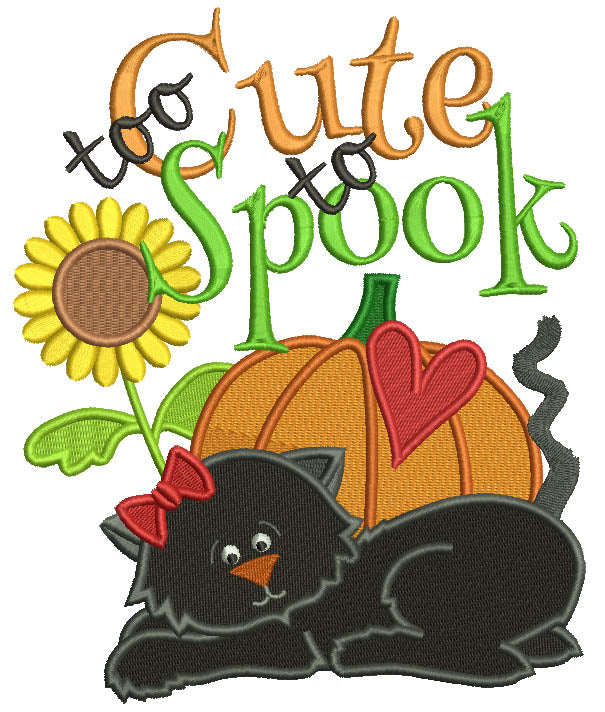 Too Cute To Spook Black Cat Halloween Filled Machine Embroidery Design Digitized Pattern
