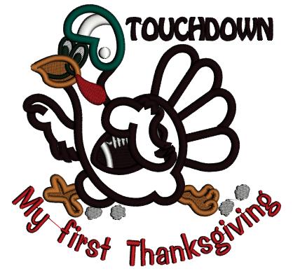 Touchdown My First Thanksgiving Football Turkey Applique Machine Embroidery Design Digitized Pattern