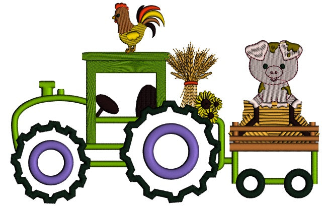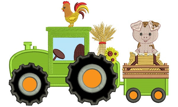 Tractor With a Piggy And Rooster Fall Applique Thanksgiving Machine Embroidery Design Digitized Pattern
