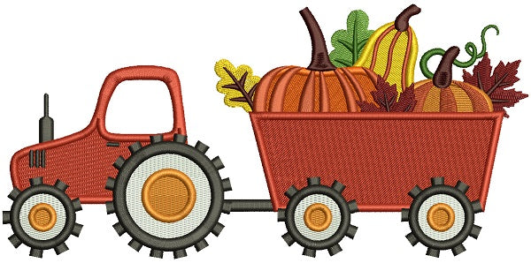 Tractor With Pumpkins Fall Thanksgiving Filled Machine Embroidery Design Digitized Pattern