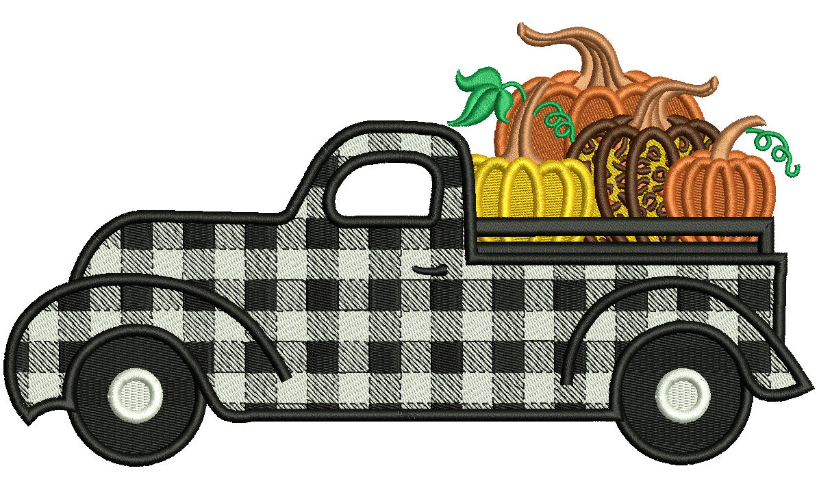 Truck With Pumpkins In The Trunk Fall Filled Machine Embroidery Design Digitized Pattern