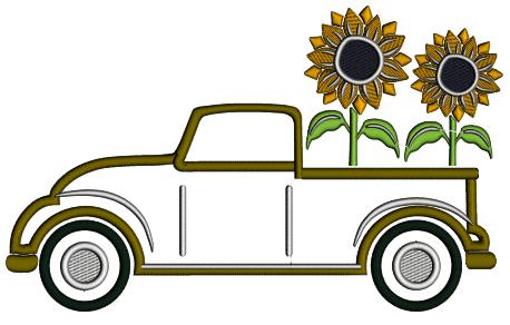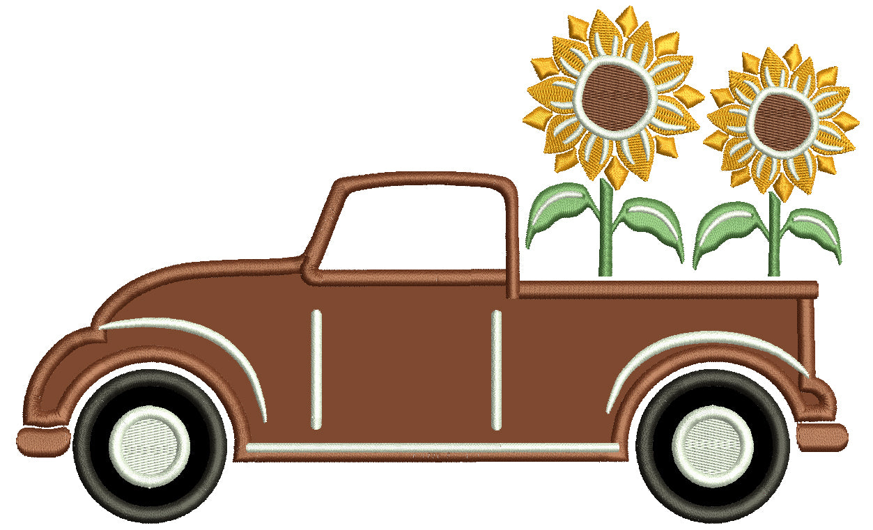 Truck With Two Sunflowers Fall Applique Machine Embroidery Design Digitized Pattern