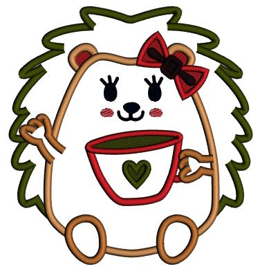 Baby Hedgehog Holding a Cup Valentine's Day Applique Machine Embroidery Design Digitized Pattern - 16712