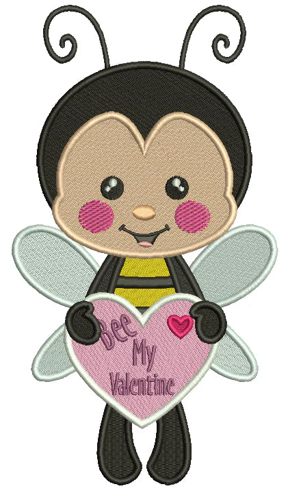 Boy And Girl Bees Holding Hearts Valentine's Day Filled Machine Embroidery Design Digitized Pattern - 14488