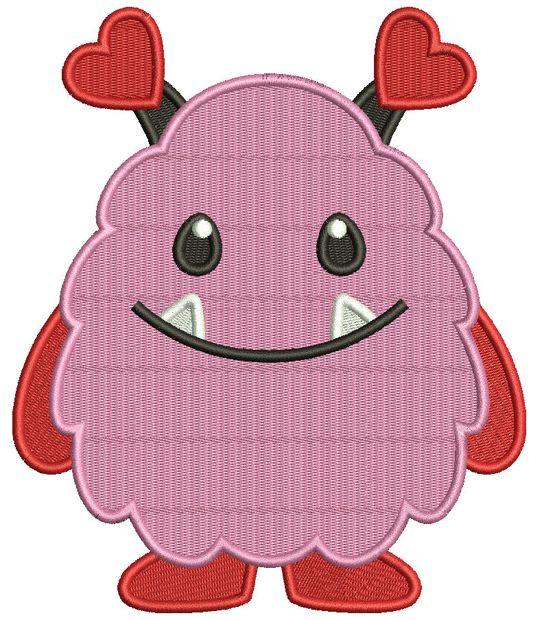 Cute Monster With Hearts Valentine's Day Filled Machine Embroidery Design Digitized Pattern - 16708