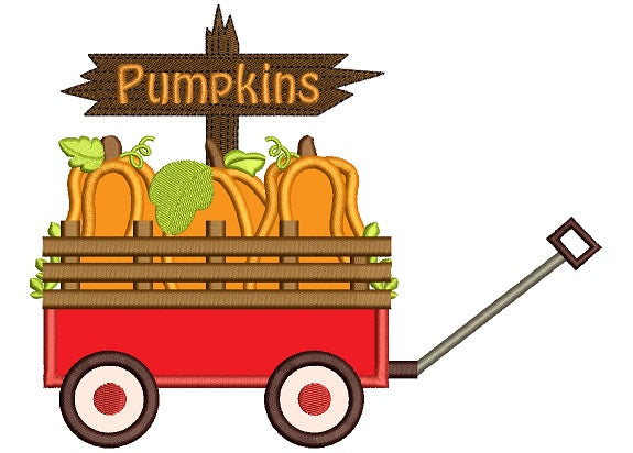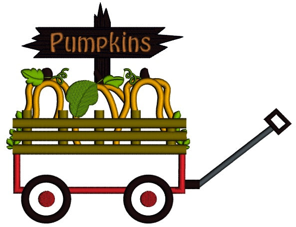 Wagon Full Of Pumpkins Halloween Applique Machine Embroidery Design Digitized Pattern