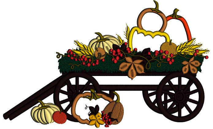 Wagon With Pumpkins Applique Machine Embroidery Design Digitized Pattern