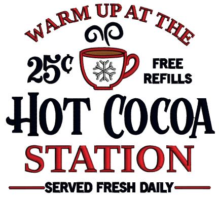 Warm Up At The Hot Cocoa Station Christmas Applique Machine Embroidery Design Digitized Pattern