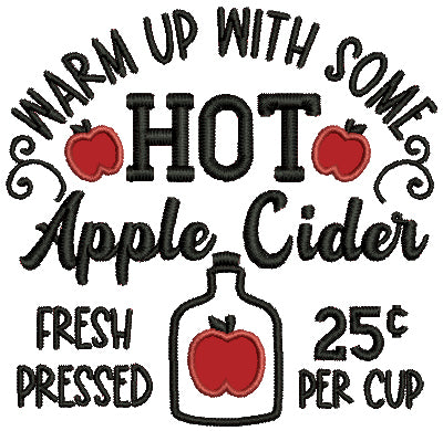 Warm Up With Some Hot Apple Cider Pressed Fall Applique Machine Embroidery Design Digitized Pattern