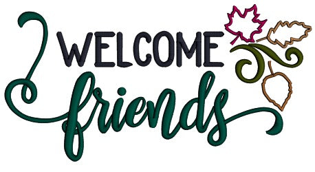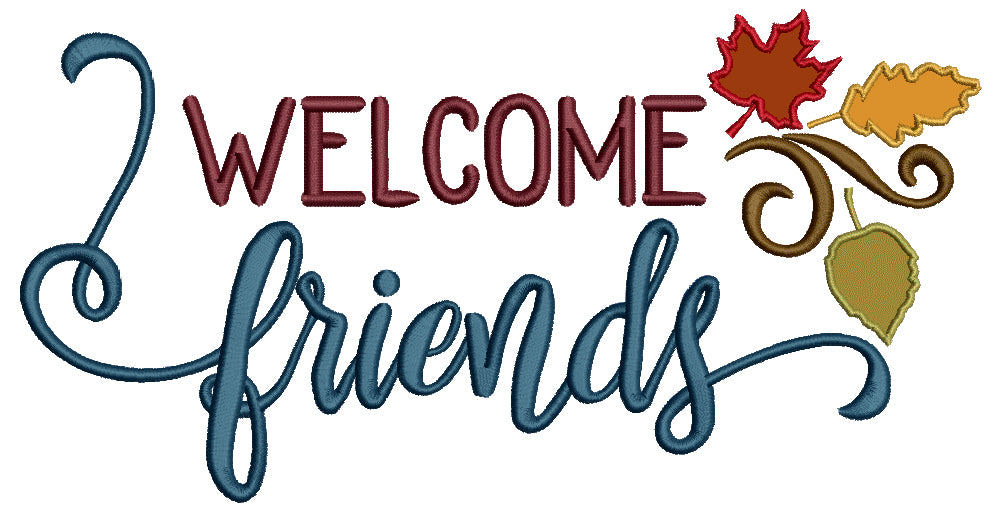 Welcome Friends Fall Leaves Applique Machine Embroidery Design Digitized Pattern