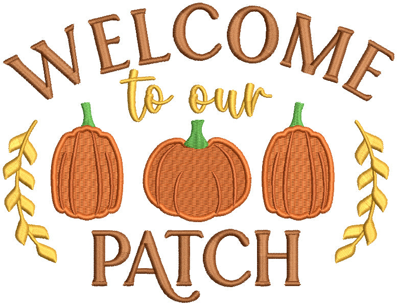 Welcome To Our Patch Three Pumpkins Fall Thanksgiving Filled Machine Embroidery Design Digitized Pattern